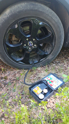 Heräilin taas ensin yhdeksän maissa, mutta sain torkuttua vielä tovin aikaa hiestä huolimatta. Kymmenen maissa nousin ylös ja lähdin koskelle aamukahvin keittoon. Siinä kamppeita kasaillessa huomasin auton takarenkaan olevan liki tyhjä. Se onkin hieman vuotanut edellisviikon soratietuhojen jälkeen (kaksi rengasta rikki, neljä tubeless-paikkaa..), mutta nyt vuoto on pahentunut kun noin äkkiä on tyhjentynyt. Saapa nähdä miten sitä kotiin päästään...